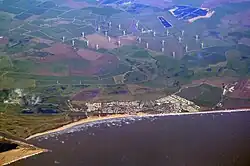 Aerial view, showing the proximity of Little Cheyne Court Wind Farm