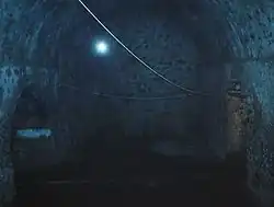 In Cape Coast Castle, the underground dungeon was a space of terror, death, and darkness. This stood as a direct juxtaposition to the European living quarters and commanding heights of the administrative quarters above, whose occupants lived relatively luxuriously. The basement of this imposing fortress was often the last experience enslaved people had of their homeland before being shipped off across the Atlantic, as this signified the beginning of their journey.[5]