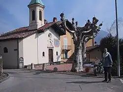 The Carona romanesque village church of San Giorgio was first mentioned in 1425. Two years later it was raised to become a parish church. The church of S. Marta was built in the 14th century, and was formerly known as the Church of SS Pietro e Paolo. The Baroque pilgrimage church of Madonna d'Ongero was built in 1624, to the west of the village in the forest. The church of S. Maria delle Grazie was built in Ciona. The last two churches as well as the homes of the village from the 17th and 18th centuries represent the growing wealth of the village, through emigration of artists from Carona. The Carona artist families, including the Aprile, Casella, Scala and Solari families, were active throughout Europe during the 15th-18th centuries.[2]