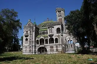 The Castle of Dona Chica (Portuguese: Castelo da Dona Chica) is a neo-romantic castle and/or residence located in the civil parish of Palmeira, municipality of Braga, in the northern region of Portugal. Originally designed by Ernesto Korrodi, the project suffered from a lack of funds early, eventually changing hands and falling into the possession of creditors.