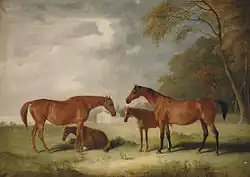 ![]() Filigree and her Daughter Cobweb, with Foals in a Landscape by John Ferneley c. 1827. The foal on the ground is probably Charlotte West | |