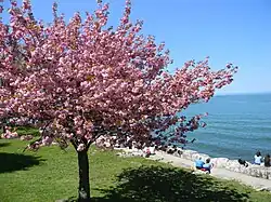 High Park in Toronto, Ontario, features many Somei-Yoshino cherry trees that were given to Toronto by Japan in 1959.[8] Through the Sakura Project, the Japanese Consulate donated a further 34 cherry trees to High Park in 2001, plus cherry trees to various other locations like Exhibition Place, McMaster University, York University (near Calumet College and on Ottawa Road near McLaughlin College) and the University of Toronto's main campus (next to Robarts Library) and Scarborough campus. Niagara Falls has many trees near the falls themselves.[22] Royal Botanical Gardens in Burlington and Hamilton was also the recipient of several Somei-Yoshino cherry trees donated as part of the Sakura Project.[23] The trees are located in the Arboretum and the Rock Garden and were planted to celebrate the continual strengthening of friendship between Japan and Canada. Peak bloom time at the Royal Botanical Gardens is normally around the last week of April or the first week of May.[24]