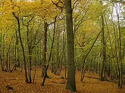 Ashcombe Bottom is a wooded area in the south of the parish, which forms part of the National Trust Blackcap reserve.[4] The reserve makes up a section of the Clayton to Offham Escarpment SSSI.