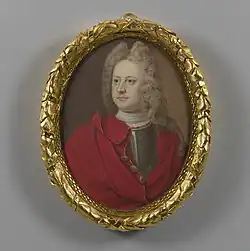 Christian Richter's father had intended to enter him on the goldsmiths' lists but died in 1695 before this could be arranged. His mother entered his name that same year, however, and he appears to have worked for his relation Frantz Boll. He was discharged as a journeyman in 1698, after less than three years, and with his brother Bengt went to study medal engraving under Arvid Karlsteen. Around this time he took up portrait-painting, especially in miniature and enamel, and may have learnt to paint from Karlsteen (who occasionally painted miniatures) or perhaps with Elias Brenner, the leading Swedish miniaturist of his time. Wilhelm Nisser noted that Richter's 1701 miniature of the Stockholm merchant Samuel Worster 'betrays a very great capacity'.[3][1]