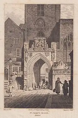 - ^ Historic England, "Church of St John the Baptist and St John's Gate, Bristol (1202022)", National Heritage List for England, retrieved 9 July 2013