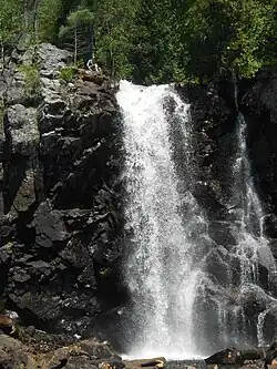 These trails have nature interpretation panels, some dealing with the life of workers in the days of the log drive, vestiges of which can be seen along the trails. The trails of this park cross a forest of spruce, white pine and red pine. In addition to the main fall, 18 m high, we will see several small falls and waterfalls. The park connects to the Boule trail (3.9 km connecting trail).[3]