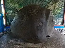 The inscription was inscribed on a huge natural stone locally known as batu kali (river stone) weighted eight tonnes, and measures 200 centimetres by 150 centimetres.[1]: 16