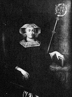 The official foundation of the monastery can be established on 16 June 1224. That is when, in the presence of the papal legate Conrad van Urach, the foundation deed was signed by Gerard III, Count of Guelders, and his wife, Margaret of Brabant. However, this signing was only a legal formality, as the monastery had been established in Roermond several years earlier, from 1218.[2] The monastery church was incorporated in the Cistercian order in 1220,[3] although the building might not have been completed by then. It was consecrated by the Archbishop of Cologne.[3] The first abbess was Richardis of Bavaria, widow of Count Otto I of Guelders and mother of Gerard III.[4] At her request, the abbot of Kamp was appointed visitor by the pope.[3] She died in 1231 and was buried in the abbey.