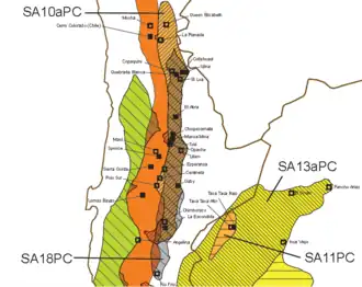 - ^ Maksaev, Víctor; Townley, Brian; Palacios, Carlos; Camus, Francisco (2006). "6. Metallic ore deposits". In Moreno, Teresa; Gibbons, Wes (eds.). Geology of Chile. Geological Society of London. pp. 179–180. ISBN 9781862392199.