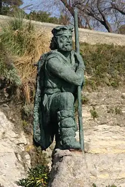 Schulten's version allowed Corocotta to be appropriated in Spain as a patriotic hero of resistance to Roman rule, comparable to the status of the Lusitanian anti-Roman resistance leader Viriatus in Portugal.[7][10] Peter Michael Swan quotes F. Diego Santos describing him as "a Cantabrian guerrilla leader; his surrender possibly belongs to Augustus’ sojourn in Spain ca. 15–14 B.C."[2] He is the hero of Paul Naschy's 1980 sword and sandal film Los cántabros (The Cantabrians), and has appeared as a resistance hero in several other works.[11] In 1985 a statue identified as Corocotta was erected in Santander. The statue, by Ramón Ruíz Lloreda, officially represents the independent spirit of "the primitive Cantabrian" illustrating a line from Horace, "Cantabrum indoctum iuga ferre nostra" ("the Cantabrian, who has not been taught to bear our yoke").[12][13]
