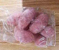 A coucougnette is a confection made with almonds, marzipan, and chocolate.[1] The sweet consists of a whole roasted almond coated in dark chocolate and rolled in a mixture of crushed almonds, cane sugar, ginger brandy, and Armagnac. Each coucougnette is dipped in raspberry juice, giving it a pink color.