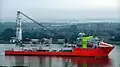 A crane vessel, crane ship, crane barge, or floating crane is a ship with a crane specialized in lifting heavy loads, typically exceeding 1,500 t (1,476 long tons; 1,653 short tons) for modern ships. The largest crane vessels are used for offshore construction.[1]