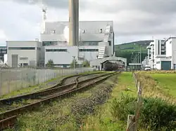The Douglas Firebrick Company Ltd had its works located where the Wilson Car Auction company now trades (2008). The works closed in September 1945.[21] The railway was double track and narrow gauge, working through a 'cable and pulleys' system on light steel rails. The gravity railroad allowed the weight of the loaded cars, which were disconnected for unloading, to return the empty ones back up to the mine. The surface of the inclined plane railroad was paved with firebricks, for employees to walk up the tracks to get to the main Dalry to Kilwinning road where they could catch a bus. The small brick structure gave them shelter from the weather, while they waited. The building is open on the southerly side, and originally had windows on the others (now bricked in), so that they could watch for the next bus coming. The current access road and bridge are more recent additions, as formerly vehicular access to the works was by a road which connected to the area near the railway station, almost a mile (1.5 km) to the north. The railway went through a short cutting and passed under the main road in a short tunnel. A truck has been preserved at the nearby Dalgarven Mill Museum of Scottish Country Life and Costume.