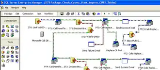 Here a DTS package is edited with DTS Designer in Windows XP.