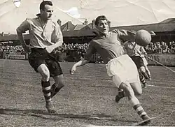 Born in Middlesbrough, Miller played for local youth team South Bank Casuals, scoring 42 goals as centre forward in the 1934−35 season.[1] He signed for Middlesbrough a couple of seasons later but failed to make a first team league appearance. His career was interrupted by the Second World War. Miller was drafted into the RAF in 1940 as a PTI (Physical Training Instructor) and spent two years training servicemen in Canada. On returning to England he was stationed at various RAF bases and guested for local league teams when league football resumed. A subsequent move to Wolverhampton Wanderers gained him three League games before a serious leg muscle injury sidelined him for a season. A move to Derby County brought him a single appearance in half a season.[2]