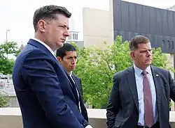 Holt was elected mayor on February 13, 2018, defeating Taylor Neighbors and Randall Smith in a nonpartisan race.[23] Holt was sworn in as mayor on April 10.[24] He resigned from the state senate before taking office. At the time of his swearing-in, Holt was 39 years and one month old, making him Oklahoma City's youngest mayor since 1923 and the youngest mayor of a U.S. city over 500,000, as well as Oklahoma City's first Native American mayor.[25][26] In 2019, Holt and city leaders opened the city's new streetcar system, a project funded by MAPS 3.[27]