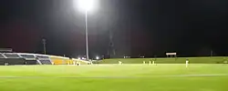 During the late 2000s, discussions regarding the possibility of playing day/night Test matches occurred. In the West Indies, the first floodlit first-class cricket match in which the teams used a pink ball, was played between Guyana and Trinidad and Tobago.[10] The viability of using a pink ball was also tried out by Cricket Australia and some Indian Premier League and Bangladesh Cricket League franchises.[11] The annual curtain-raiser to the English cricket season in 2010 was played under floodlights in Abu Dhabi, with a mixed but generally positive reception.[12] A year later, in 2011, the first County Championship game to be played under lights was played, between Kent and Glamorgan at St Lawrence Ground, Canterbury.[13]