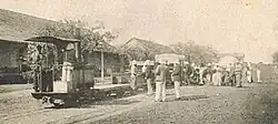 The 600 mm (1 ft 11+5⁄8 in) gauge Decauville railway was built in 1900 from Antsirane (now Antsiranana) to the Tunisian Fountain (Fontaine Tunisienne) at today's STAR factory.[1] It started at the port and ran on the Rue Gouraud and the Boulevard Bazeilles up to the Cercle Français (now Suarez Art) and up the Boulevard Militaire. It turned into the Boulevard de Sakaramy at the height of Camp Lubert, from where it led past the present town hall to l'Octroi and the Tunisian Fountain. At the end of 1900, it was extended from the Tunisian Fountain via Antanamitara and Andranomanitra to the junction of today's road to Joffreville.[2][1]