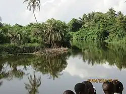 The Densu River is a 116 km long river in Ghana rising in the Atewa Range.[2] It flows through an economically important agricultural region, supplies half the drinking water to Ghana's capital city of Accra. The river ends in an ecologically significant wetland delta[3] on the coast of the Atlantic Ocean.[4] The Densuano[5] Dam and Weija Dam[6] are situated on the Densu River.