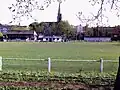 After playing in the Mid-Surrey League in the early 1900s,[3] Dorking were founder members of the Surrey County Senior League in 1922, and moved in 1956 to its current ground in Meadowbank Park, having previously played at a ground in Pixham Lane.[4] The club joined the Corinthian league in 1956 and then the Athenian League in 1963. The club merged with Guildford City of the Southern League in 1974 to form Guildford & Dorking United, with Meadowbank as the home ground. However, after just two seasons, the club collapsed in mid-season, with another club being formed called Dorking Town in 1977 to complete its predecessor's remaining games before joining the Surrey Senior League in 1977–78.[5] In 1983, by then playing in the Isthmian League, the club reverted its name to Dorking F.C.[6]