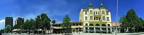 Leskovac became part of Serbia which received full international recognition following the Treaty of Berlin in 1878. Before the war Leskovac was part of a network of textile industry hubs from the Black Sea to the central Balkans and collaborated closely with Bulgarian textile industry. Products from Leskovac were exported duty-free to Bulgaria which exported machinery to Serbia.[21] Independence initially had a negative impact though trade barriers, tariffs and open hostilities between Serbia and Bulgaria necessitated the acquisition and development of technology for rope and industrial hemp processing. By the mid-1880s business development, particularly the textile sector enabled Leskovac to become the third largest urban area after Belgrade and Niš at the time.[22][23] The establishment of a railway line linking Leskovac with Belgrade, Skopje and Thessaloniki in 1886 also significantly contributed to the development of the town. A vocational textile school opened 1890 and in 1903 the second hydroelectric power plant in Serbia was built on the nearby Vučjanka River.[24]