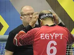![]() Egypt men's goalball team. Goalball at the IBSA World Games, Seoul, South Korea (May 2015). | |