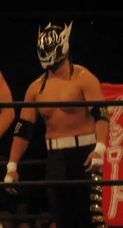 Kyosuke Mikami (三上 恭佑, Mikami Kyōsuke; born December 29, 1983),[1] better known by his ring name El Desperado (エル・デスペラード, Eru Desuperādo), is a Japanese professional wrestler. He is signed to New Japan Pro-Wrestling (NJPW),[3][4] where he is the IWGP Junior Heavyweight Champion in his fifth reign. He was a member of the Suzuki-gun stable from 2014 until its disbandment in 2022.