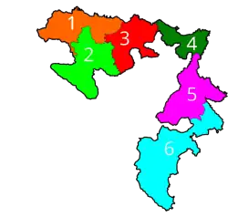 Previously there were six constituencies. In 2014, three of the most populous units were split and the remaining units were renumbered: