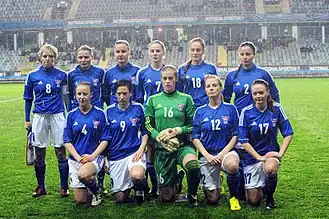 The FSF was founded on 13 January 1979[2] and a women's national league began play in 1985.[3] The first Faroese women's national team games took place in June 1986, with two defeats to Iceland. The matches, a 6–0 defeat at Kópavogsvöllur and a 2–0 defeat at Akranesvöllur, predate the Faroe Islands' membership of FIFA and UEFA but are listed as full internationals at both FIFA.com and the official website of the Football Association of Iceland (KSÍ).[4][5]