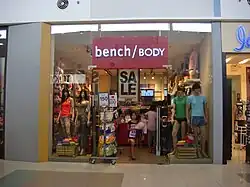 Philippine brand clothing that are popular in and outside the Philippines include Crispa, Bench, Onesimus, Michel André, Penshoppe, Loalde, Kamiseta (literally "T-shirt"), Maldita and Bayo.[29]