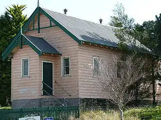 One of the most prominent landmarks in the area is the ruined house called Eurama, two kilometres west of Faulconbridge station. This substantial stone house with Tudor chimneys was built in 1881 by the stonemason Paddy Ryan, for Andrew McCulloch.[4] The property was substantial enough, or the owner had enough influence, to even warrant its own platform on the nearby railway line, Numantia. At first it was called Weemala, but the name was changed to Eurama by later owners. It was unused for some time until being restored by a new owner, but was then destroyed by bushfires in 1968.[5] The region was again under threat during the 2013 New South Wales bushfires.