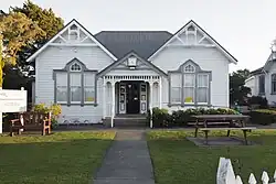 The Anzac Hall was built in 1916 to give ‘A place of resort, recreation and amusement for all those who are now or have been or may be during the term of the war employed in the military or naval service of the Crown’.[15] A large, beautiful wooden hall with two smaller rooms, it was restored for its centennial and is a Category 1 historic place.[16] It now serves as a town hall and community hub, used for concerts, events and meetings.