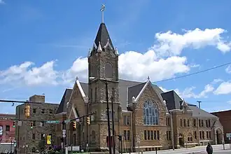 First English Lutheran Church is a historic church in Mansfield, Ohio. The cornerstone of the church was laid in September 1891 and the building itself was dedicated for use in 1894.[2] The building was added to the National Register of Historic Places in 1983.