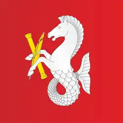 ? – Present | Prilep Municipality | A dark blue background with the municipal coat of arms, outlined in white, in the middle. |