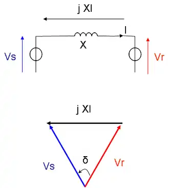 A simple Circuit Diagram showing two buses connected through an impedance, with a Vector Diagram representing the phase-angle between them