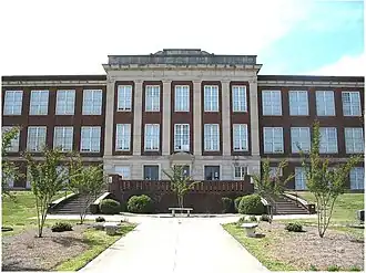 Franklinton Public School was built in 1923 to house all grade levels, replacing the much smaller and inadequate Franklinton Graded School on the north end of town which was only 17 years old at the time. It was a gift to the Town of Franklinton from Samuel C. Vann, founder and original owner of the historic Sterling Cotton Mill which is also located in Franklinton. Franklinton Public School first opened to students on September 11, 1924.[5] The main building is three stories. When built, the first floor was originally used as the elementary school, the second was the middle school, and the third was used as the high school. The lower grades were moved to the former B.F. Person-Albion High School in 1969, now Franklinton Elementary School, when schools were fully integrated. It previously provided education for African-American students. Franklinton Public School was renamed Franklinton High School.[5]