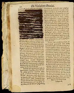 In 1501, Pope Alexander VI issued a Bill against the unlicensed printing of books. In 1559, Pope Paul IV promulgated the Index Expurgatorius, or List of Prohibited Books.[20] The Index Expurgatorius is the most famous and long-lasting example of "bad books" catalogues issued by the Roman Catholic Church, which presumed to be in authority over private thoughts and opinions, and suppressed views that went against its doctrines. The Index Expurgatorius was administered by the Roman Inquisition, but enforced by local government authorities, and went through 300 editions. Amongst others, it banned or censored books written by René Descartes, Giordano Bruno, Galileo Galilei, David Hume, John Locke, Daniel Defoe, Jean-Jacques Rousseau and Voltaire.[23] While governments and church encouraged printing in many ways because it allowed for the dissemination of Bibles and government information, works of dissent and criticism could also circulate rapidly. Consequently, governments established controls over printers across Europe, requiring them to have official licenses to trade and produce books.[21]