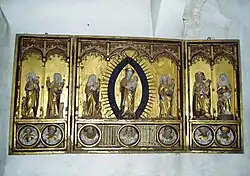 Of the church furnishings, the baptismal font and the triumphal cross both date from the 13th century. An altarpiece made in northern Germany circa 1480 deserve special mention. It depicts the Holy Family and relatives. Other furnishings are mostly from the 18th century. The unusually elaborate organ is from the 17th century.[2]