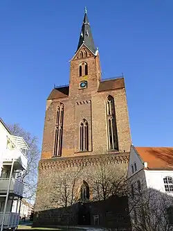 Gothic Neubrandenburg Gate with the Church of the Virgin Mary in the background | |