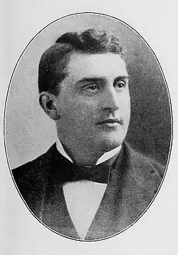 Heinze arrived in Butte, Montana, in 1889 as a mining engineer for the Boston and Montana Company. He became known for his hard drinking and fun-loving antics in Butte's saloons and gambling dens, whilst donning society dress and having a shy demeanor and polished manners that impressed the ladies.[5] Assisted by an inheritance of $50,000 from his recently deceased father, Heinze revelled in working hard to be a significant player.[6] In 1894, Heinze's Montana Ore Purchasing Company opened a sophisticated new smelter, allowing Heinze to offer low-priced smelting to small mining companies. Originally, Heinze had to lease mines and secure ore from independent companies in order to keep operating. Heinze was able to locate rich ore bodies and the Rarus Mine, purchased in 1895, turned out to be one of Butte's premier mining properties.[7]