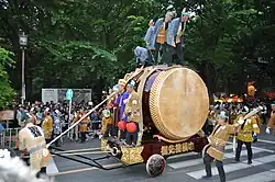 One of the giant drums for the Kurayami festival held at Okunitam Shrine every spring