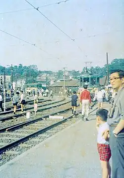 The station first opened as Tamagawa Station (玉川駅, Tamagawa-eki) on 1 April 1907, following the beginning of service on the Tamagawa Line (玉川線, Tamagawa-sen) tram. On 1 March 1924, the station was also connected to the Kinuta Line (砧線, Kinuta-sen) tram. On 15 July 1926, the Mizonokuchi Line (溝ノ口線, Mizonokuchi-sen) opened between Tamagawa Station and Mizonokuchi Station. On 1 November 1929, the Futako-tamagawa Line (二子玉川線, Futako-tamagawa-sen) opened, coinciding with the opening of Futako-tamagawa Station (二子玉川駅, Futako-tamagawa-eki). This line would be incorporated into the Oimachi Line on 25 December 1929. On 10 March 1939, Tamagawa Station was renamed to Yomiuri-Yuen Station (よみうり遊園駅, Yomiuri-Yuen-eki). This station would be integrated with Futako-tamagawa Station on 1 December 1940, becoming Futako-Yomiurien Station (二子読売園駅, Futako-Yomiurien-eki). On 1 July 1943, the Mizonokuchi Line was integrated into the Oimachi Line. On 20 October 1944, Futako-Yomiurien Station was renamed to Futako-tamagawa Station. On 1 August 1954, Futako-tamagawa Station was renamed to Futako-tamagawaen Station (二子玉川園駅, Futako-tamagawaen-eki). On 11 October 1983, the Oimachi Line was renamed to the Den-en-toshi Line. This line was different from the modern day Den-en-toshi Line. On 10 March 1969, the Tamagawa and Kinuta tram lines were abolished. On 7 April 1977, the Shin-tamagawa Line (新玉川線, Shin-tamagawa-sen) began service. The name Oimachi Line was revived on 12 August 1979 for its modern usage. On 6 August 2000, the Shin-tamagawa Line was renamed to the Den-en-toshi Line, which remains to this day. At the same time, Futako-tamagawaen Station was renamed back to Futako-tamagawa Station.