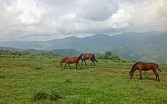 The Caspian tiger (Panthera tigris virgata) once roamed these mountains, but is now extinct. Other large mammals here are the lynx (Lynx lynx), brown bear (Ursus arctos), wild boar (Sus scrofa), wolf (Canis lupus), golden jackal (Canis aureus), jungle cat (Felis chaus), red fox (Vulpes vulpes), roe deer (Capreolus capreolus), badger (Meles meles), etc.