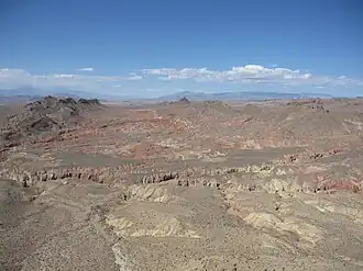 Gale Hills, formerly considered part of the Muddy Range (1879), and later the South Muddy Mountains (1980s), are a range of hills southwest of the Muddy Mountains and about three miles north of the Boulder Basin of Lake Mead, in Clark County, Nevada. It is bounded on the east by Callville Wash; on the south by the Black Mesa lava flows; on the northwest by the valley of Gypsum Wash. Its highpoint is at 36°15′32″N 114°43′12″W / 36.25889°N 114.72000°W which lies at 3,756 feet (1,145 meters).