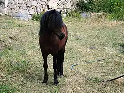 The Galician or Galician Mountain Horse, Spanish: Caballo de Pura Raza Gallega,[1] Galician: Raza Equina Cabalo Galego do Monte,[5] is a breed of small horse from Galicia, in north-western Spain. It is genetically very close to the Garrano breed of northern Portugal.[2] It was in the past used as a war-horse and in agriculture; it is now raised principally for meat. The horses are bay or black.[4][3]: 463