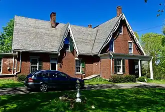The Tillson House stands on the north side of Talbot Avenue, in a rural residential area west of downtown Rockland. It is 2+12 stories in height, with a gabled roof, brick walls, and wooden trim. The gables are steep, in the Gothic Revival tradition, and the main end gables as well as dormer gables are decorated with jigsawn vergeboard. The front facade is six bays wide, with the right three in a projecting gabled section. Two of that gables bays are recessed, forming a porch with Gothic columns, and the gable edge extends to a crested railing above the first floor. Most windows are sash, with granite sills and lintels; windows near the gable peaks have Gothic-arched tops and granite sills.[2]