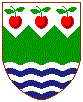 The arms, designed by Schalk Pienaar, were : Vert, on a chief dancetty Argent three apples slipped and leaved proper; a base barry wavy of six Argent and Azure. In layman's terms : a green shield displaying at the top three apples on a silver stripe with a zig-zag edge and at the bottom six wavy silver and blue stripes. The crest was a protea flower, the supporters were two bushbuck, and the motto Regio melle dulcior.
