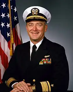 Rear Admiral George Henry Strohsahl Jr. (May 24, 1937 – May 22, 2011) was a highly decorated Navy strike fighter and test pilot who flew missions in Vietnam. Born in New Jersey and raised in Mystic, Connecticut,[1] he rose to become commander of the Pacific Missile Test Center. Strohsahl spent 35 years in the U.S. Navy and was a 1959 honors graduate of the U.S. Naval Academy. He later earned a master's degree in Air-Space Physics from the Naval Postgraduate School and was designated a Material Professional. Strohsahl was the first naval aviator of his specialty selected for flag rank. He was awarded the Legion of Merit three times and also received the Distinguished Service Medal.