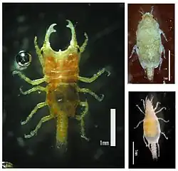 1. ^ a b c Richard Brusca, Vania R. Coelho & Stefano Taiti (2001). "Suborder Gnathiidae [sic]". Guide to the Coastal Marine Isopods of California. Tree of Life Web Project. Retrieved August 28, 2010.