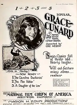 - ^ "Motion Picture Studio Directory", entry for Grace Cunard under "Actresses—Leads", Motion Picture News (New York, N.Y.), October 21, 1916, p. 72. Internet Archive. Retrieved June 11, 2019.